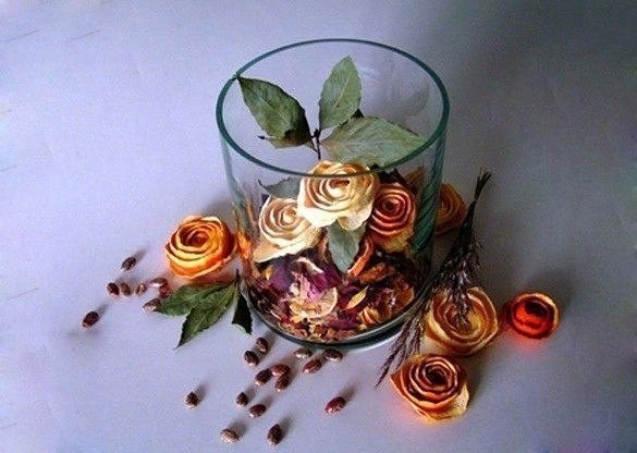 Апельсиновые розочки: нарезаем, сворачиваем, высушиваем.