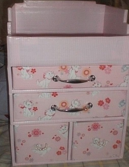 Тумбочка из картона для хранения мелочей, конечно, не вынесет влаги и больших нагрузок.