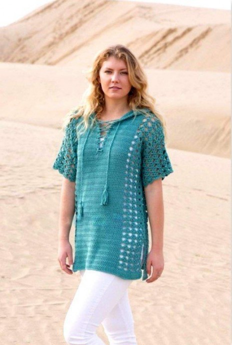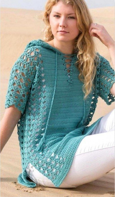 Ажурная туника с капюшоном создана для ярких и солнечных дней.