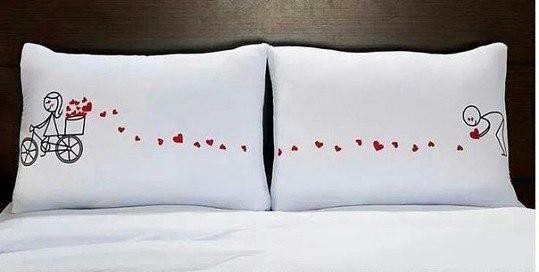 Оригинальная идея вышивки подушек будет просто бесподобна для влюбленной пары.