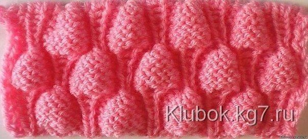 Двойной коричневой нитью набрать 72 п. и вязать лиц. гладью круговыми р. Через 8 см от наборного края вязать 20 р. узором «шишечки» зелёной нитью, затем вязать лиц. гладью.