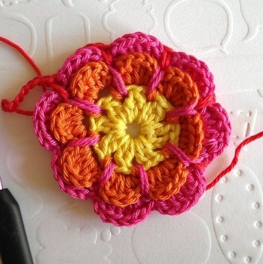 Вяжем цветочек крючкомСамое важное здесь - это правильно подобрать оттенки цветов пряжи.