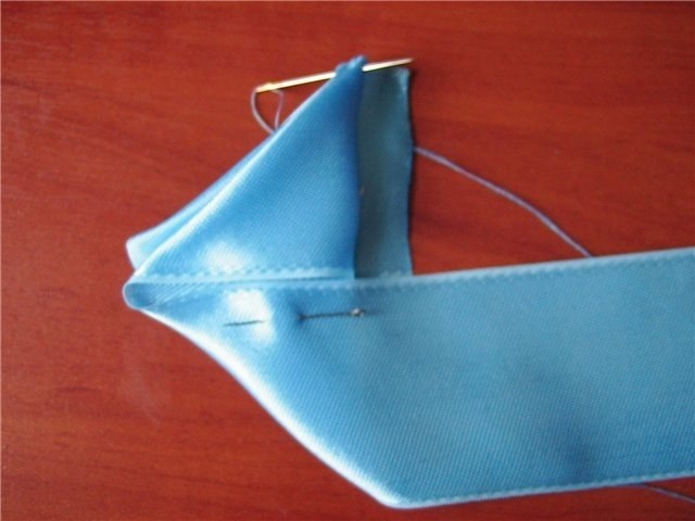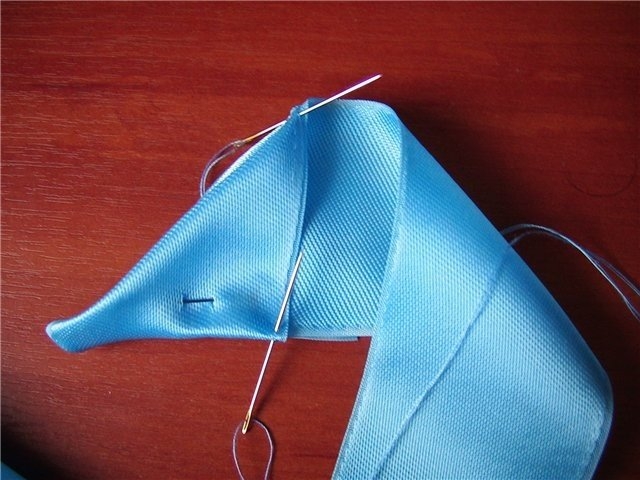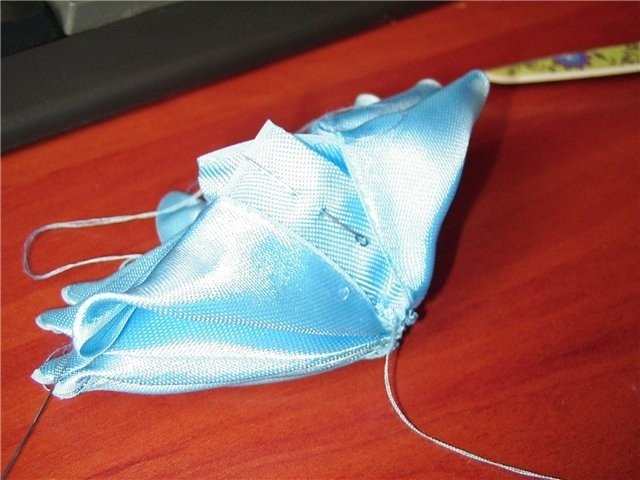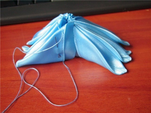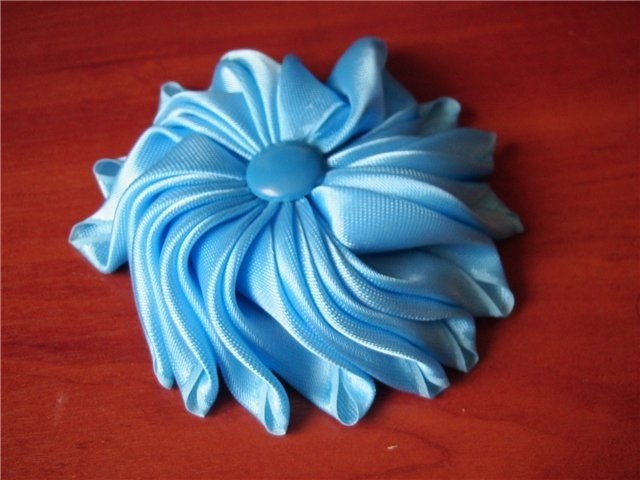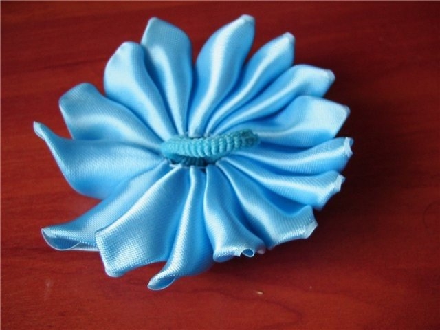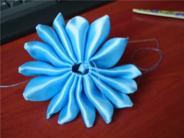 Цветочек из лентМожно сшивать, но удобнее склеить.