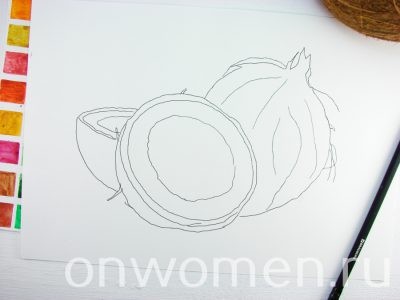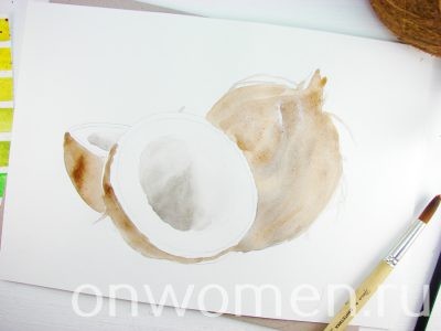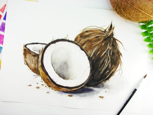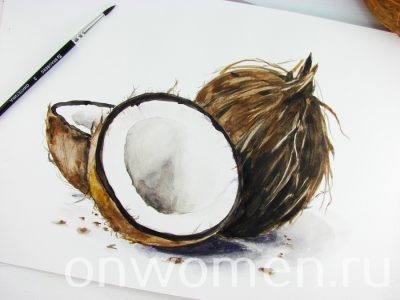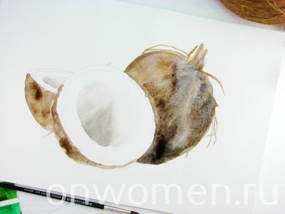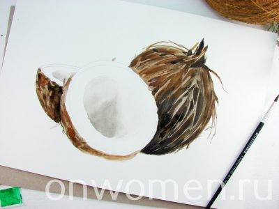 Как нарисовать кокос акварелью
