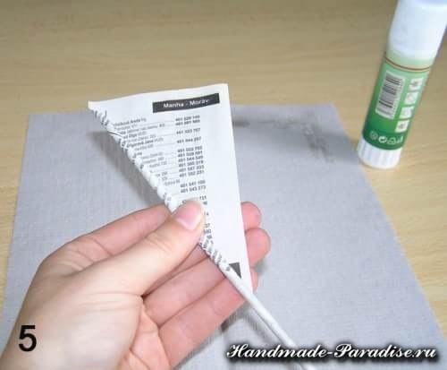 Накрутив всю полоску, фиксируем кончик газеты клеем, и вытаскиваем палочку.