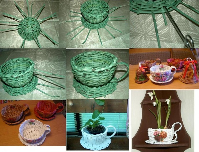 Поделки из газетных трубочек похожи на сплетенные из лозы.
