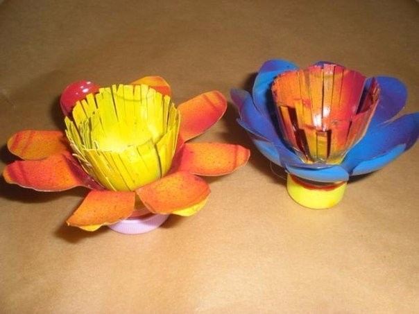 Цветочки из пластиковых бутылок для украшения двора или дачи