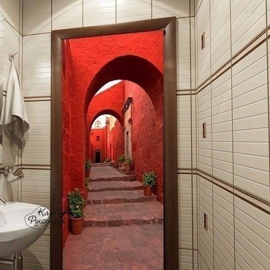 Фотообои на дверь как креативное решение интерьера способны расширить пространство.