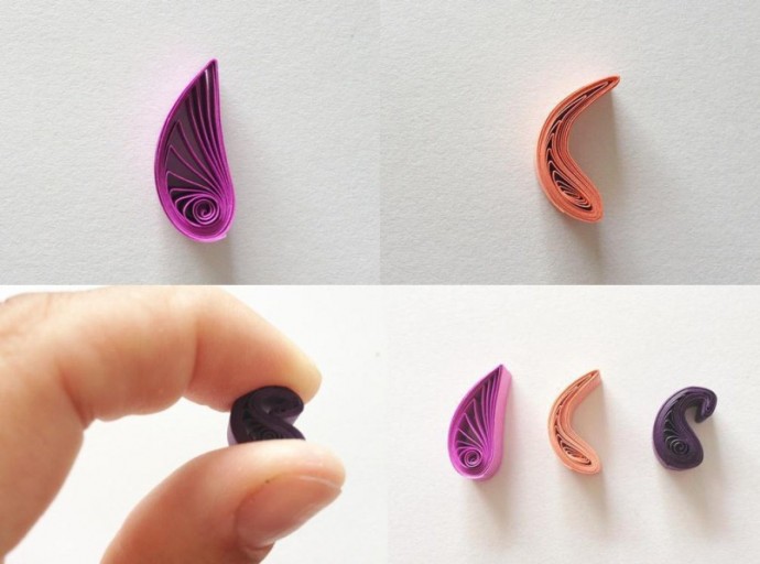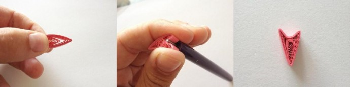Изогнутый лепесток. Базовую деталь слегка сжимают, формируя овал. Затем его концы защипывают и загибают в противоположные стороны.