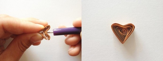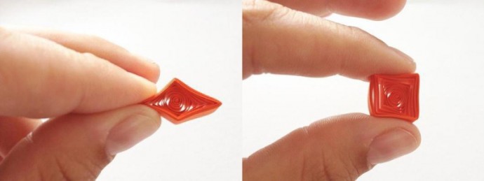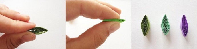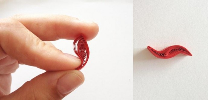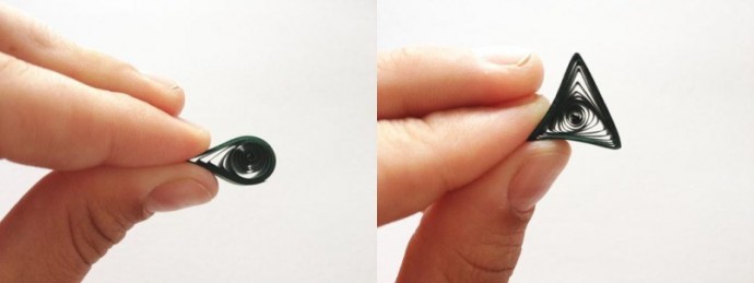 Капля. Центр свободной спирали осторожно оттягивают от центра, а противоположную сторону сдавливают двумя пальцами.