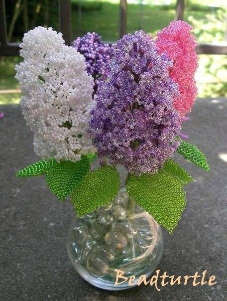 Роскошный букет сирени из бисера будет радовать вас не только весной, но и круглогодично.