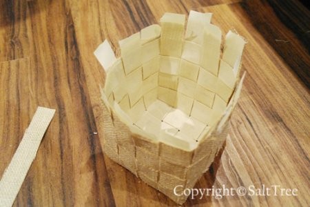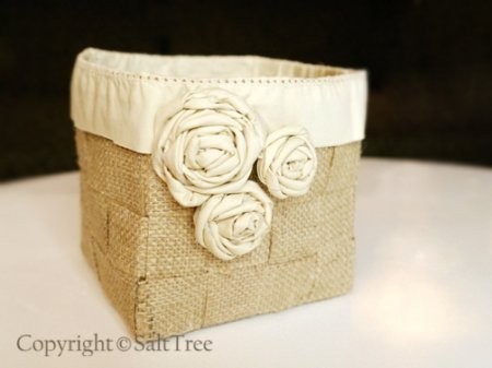 Корзина из мешковины будет удобна как в ванной, так и для мелочей.