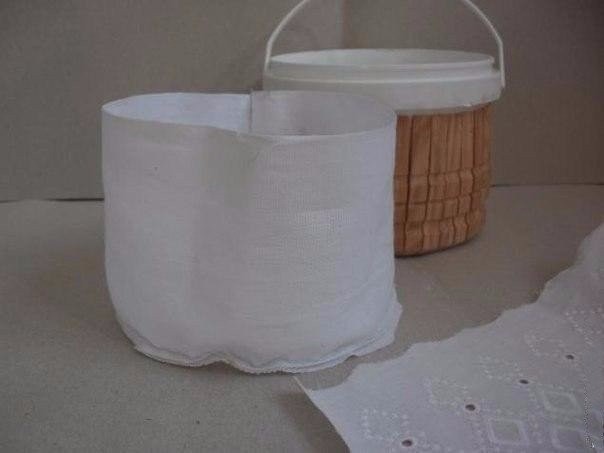 Легко можно превратить пластиковое ведро в красивую корзинку, как на картинке.