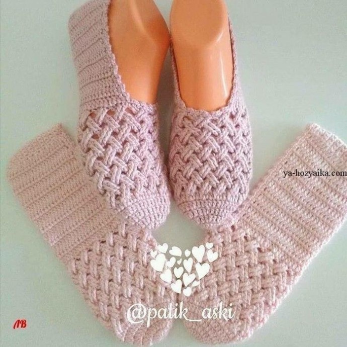 Тапочки крючком с чудесным узором