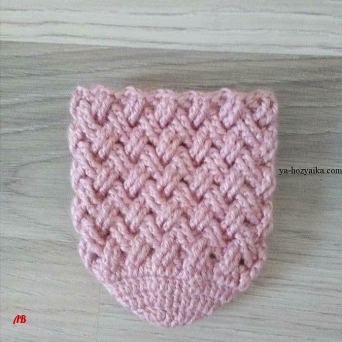 4-й ряд: вяжем аналогично 2-му, но столбики должны получиться перекрещенными снизу. В начале ряда 4ВП, 2 обычных столбика без накида, 2 петли основания пропускаем, 2 рельефных С2Н.