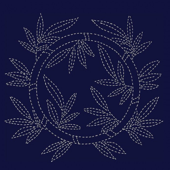 "Сашико", которое переводится как "маленький прокол", выполняется маленькими стежками, простым швом "вперед иголку". Секрет очарования этой техники - в орнаментах, а также в сочетании цветов: темно-синего и белоснежного.