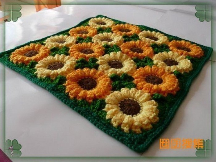 Коврик из объемных цветов. Его можно связать любой длины и формы.