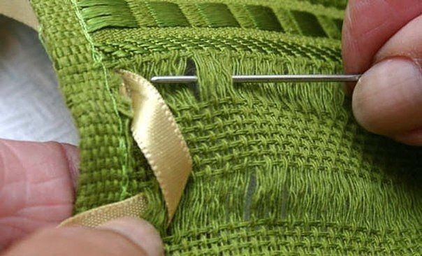 Красиво, но непрактично, причем нигде — ни на полотенце, ни на шторе и, тем более, на сумке… Любую вещь когда-нибудь понадобиться стирать с этим рисунком лентами вручную!!! Машинная стирка сведет весь труд на нет....