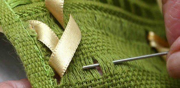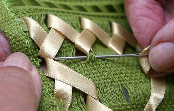 Непрактично, к тому же если рискнете вышивать — забодаетесь все время переворачивать ленту, которая будет постоянно скручиваться. И правы те, кто считает это до первой стирки — так и есть. Честно, было жаль труда и лент.
