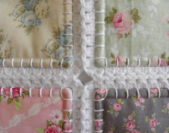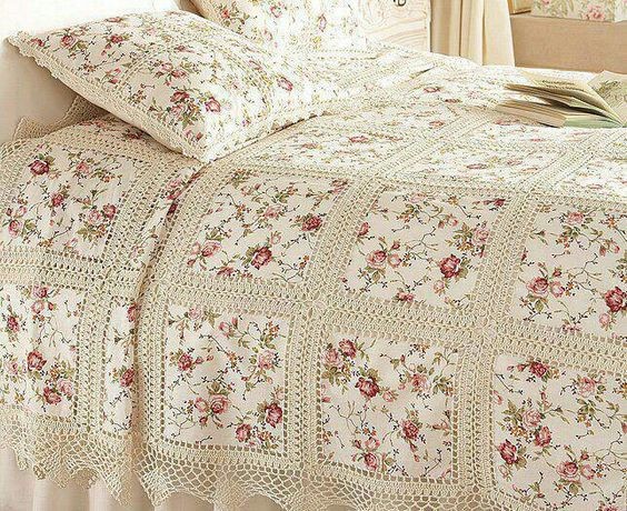Милые покрывала из мотивов с обвязкой крючком это сочетание ткани и вязания в одной вещи.