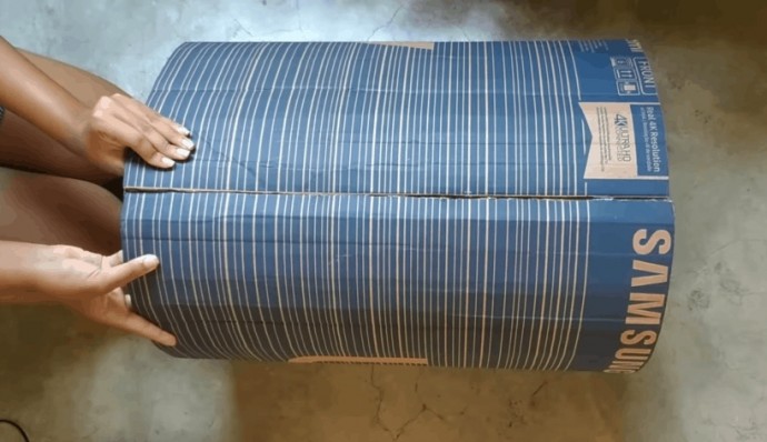 Бюджетная и практичная бельевая корзина без шитья и плетения создается из картона, веревки и внутреннего чехла.