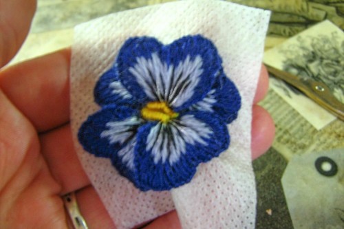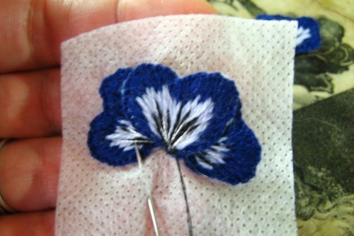 Анютины глазки могут стать объемным оригинальным украшением одежды или сумки.