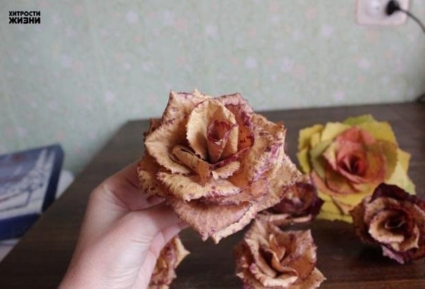 Розы из кленовых листьев: мастер-класс