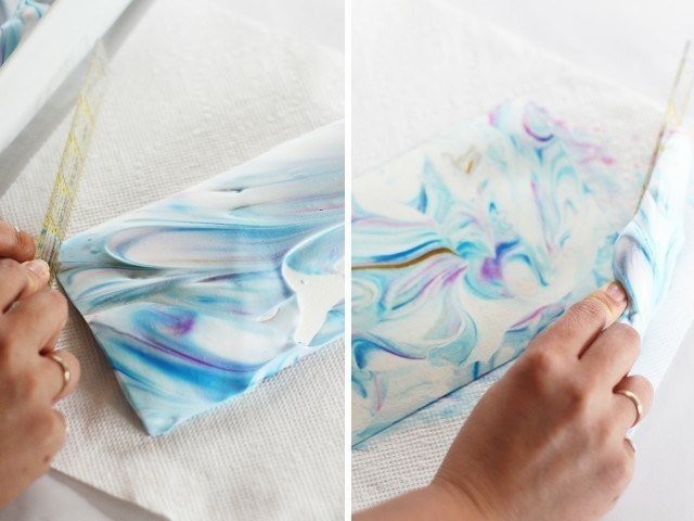 Красивая открытка с помощью пены для бритья и пищевого красителя получится у вас с минимальными усилиями.