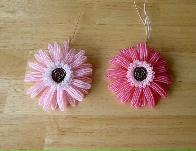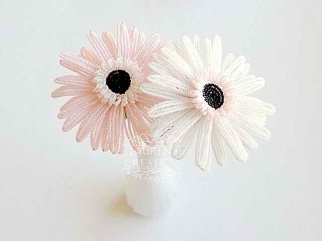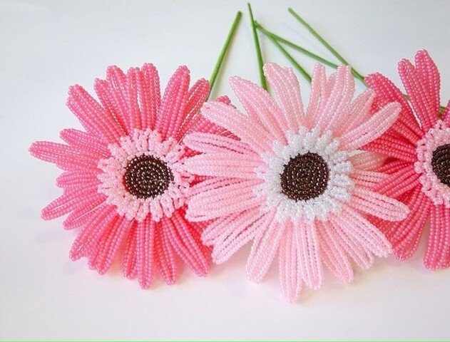 Герберы из бисера это чудесные цветы на столике каждое утро.