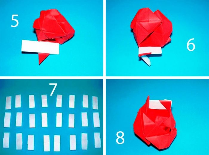 Таких уголка должно быть 4.Подготовьте полосу бумаги – её ширина должна быть равна треугольному основанию, а длина в 3,5 раза больше ширины.