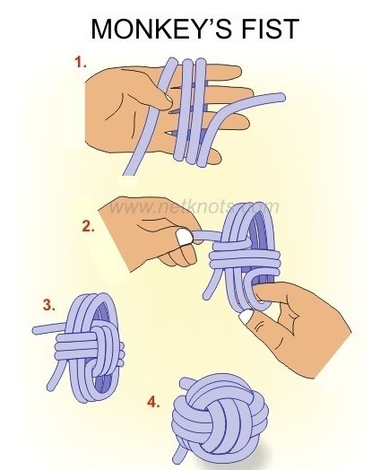 Обезьяний кулак − это покрывающий узел. Он состоит из 3,4,5,6 или 7 витков вокруг сферического сердечника, после этого идентичного количества поворотов под прямым углом, и после этого окончательно другого количества поворотов снова под прямым углом к первым двум. Поэтому он покрывает ядро, которое может быть камнем или свинцовым шариком, или чем-то более тяжелым. Число оборотов вокруг ядра определяется толщиной шнура и диаметром ядра.