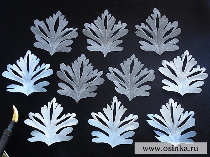С изнаночной стороны этим же ножом провести боковые жилки, между предыдущими линиями, начиная от выемок лепестковых фрагментов.