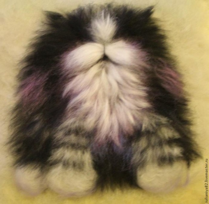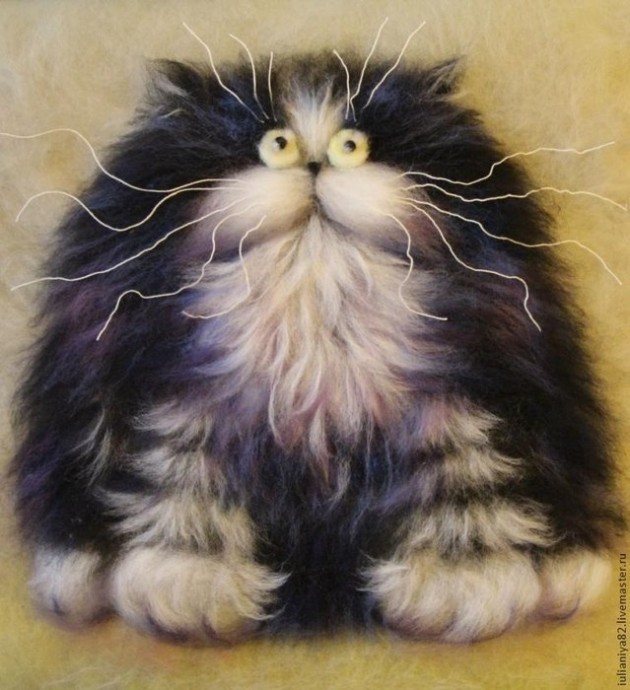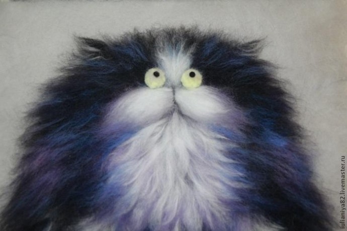 Котик в технике шерстяной живописи выглядит настоящим разбойником.