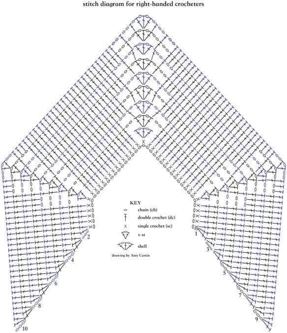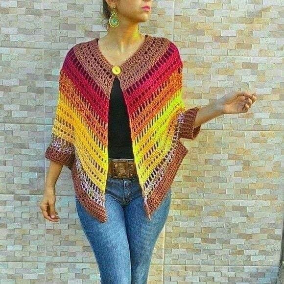 Мне кажется, что схема не соответствует готовому изделию. На схеме я вижу прибавки в 4 местах: центр переда, центр спинки, по центрам 2 рукавов. В готовых изделиях вижу прибавки только по центрам переда и спинки, остальное полотно связано по прямой без прибавок. Не знаю, может я не права. Хотелось бы связать такое пончо, идея мне понравилась.