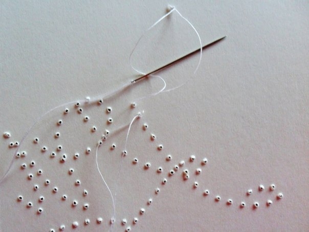 Вышивка платья бисером: мастер-класс, часть 5Автор irina ivanova (iridiya).Он уже чуть развёрнут относительно первого, отрезок чуть больше - бисеринок уже 5 и уже по убыванию разме...