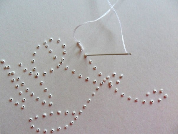 Вышивка платья бисером: мастер-класс, часть 6Автор irina ivanova (iridiya).Третий бутон : пришли снизу и закрепили.Первый мостикВторой мостикДелаем его по примеру первого бутона.Оп...
