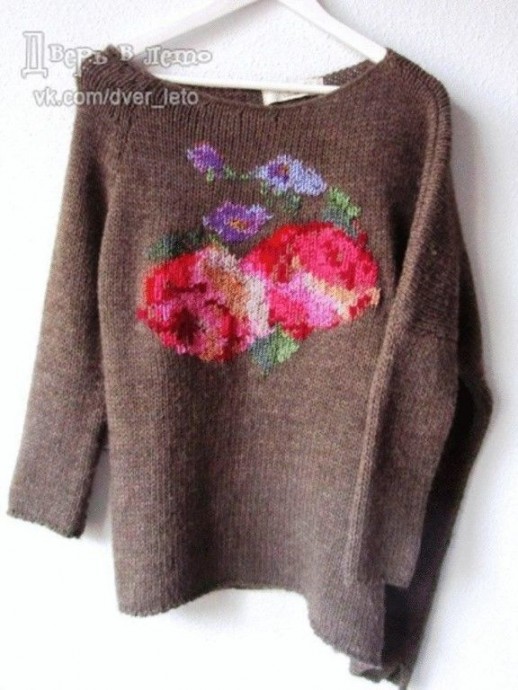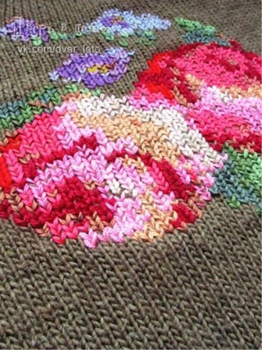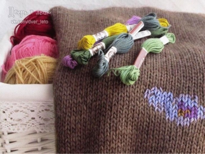 Вышивка на вязаном свитepe сильно отличается от вышивки гладью или крестом.