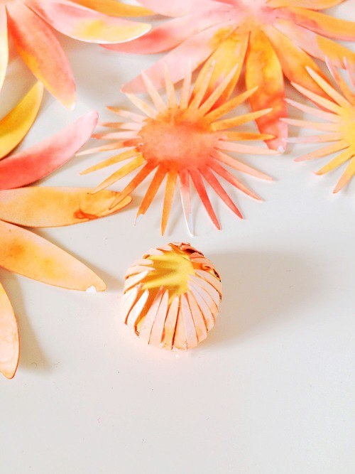 Изумительный бумажный цветок немного напоминает одуванчик, готовый слететь при первом дуновении воздуха.