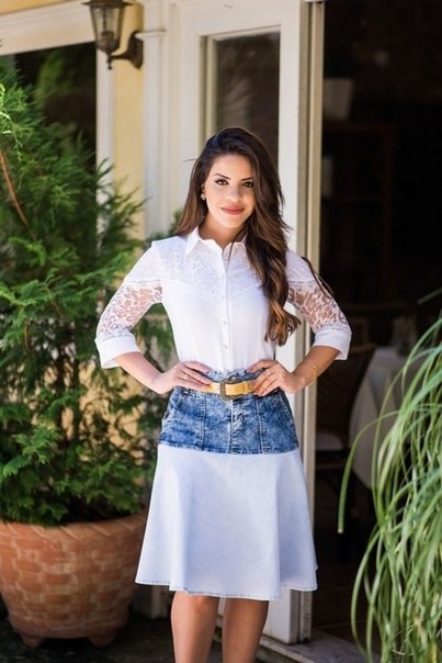 Оригинальные джинсовые юбки хороши тем, что сочетаются практически с любым верхом.