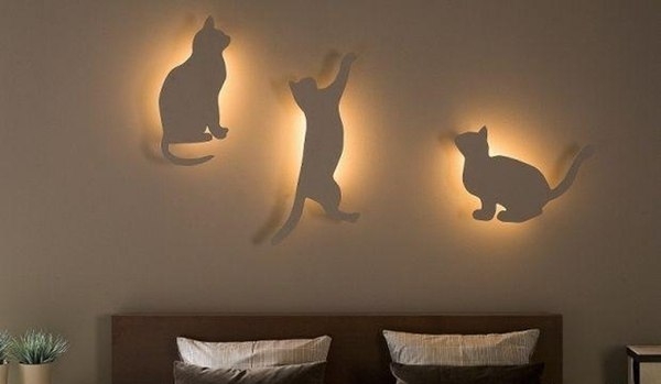 Очаровательные светильники для спальни в виде кошекМожно добавить цветные лампочки для оригинальности.