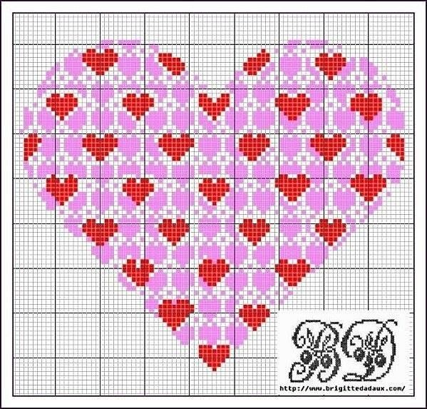 Схемы для вышивки крестиком сердечек для душевных вечеров с иголкой и ниткой.