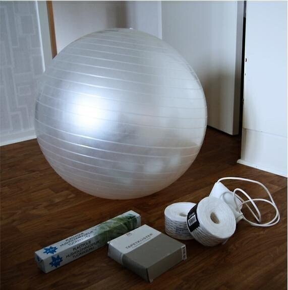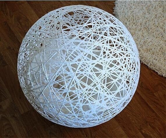 ВО-первых, мяч можно вынуть не пострадавшим. Проверено. Во-вторых, можно надуть воздушный шарик и сделать на его основе. Будет у вас светильник по цене воздушного шарика, ниток и клея.