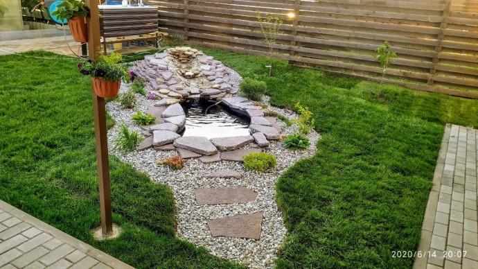 Не показана как сделана система забора и возврата воды, а ведь это главное в прудике с выливающейся водичкой.