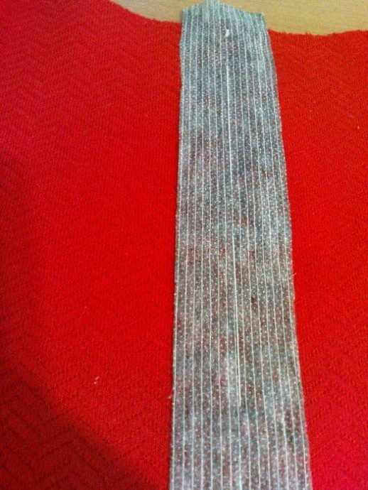 Флизелин накладываем на лицевую сторону ткани липкой стороной вверх - это важно.