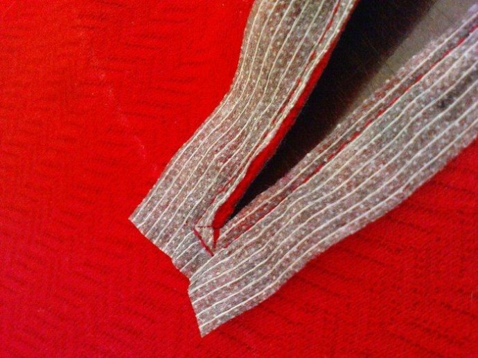 Отутюживаем. Обратите внимание, насколько аккуратно обработан срез - и тонко, что на толстых тканях очень важно.