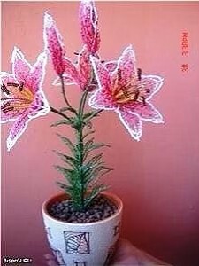 Лилия из бисера состоит из красивых завитушек - и от этого становится еще очаровательнее.