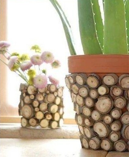 Очень оригинальная идея из самых простых материалов для экологичного оформления горшка.