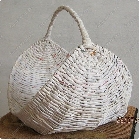 Корзина из газет на проволочном каркасе может стоять в прихожей для ключей и прочих мелких предметов.