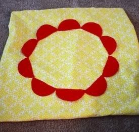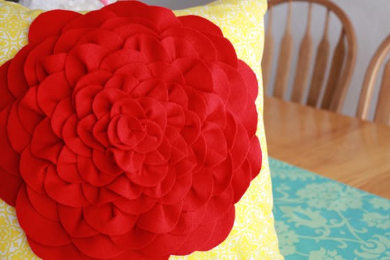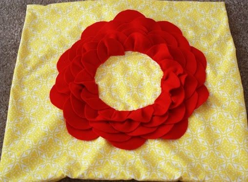 Декоративная подушка с цветком из фетра будет еще удобнее,
