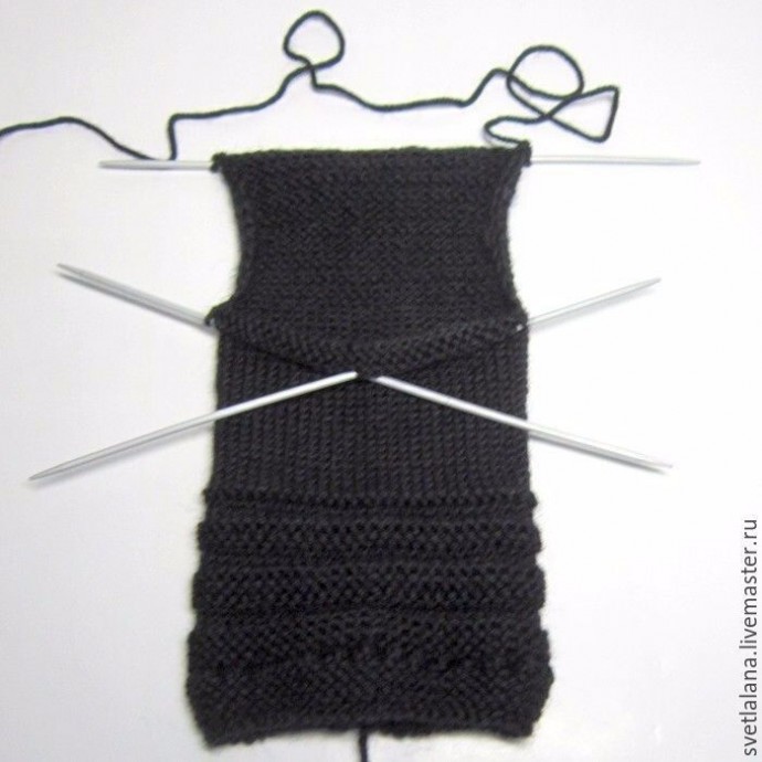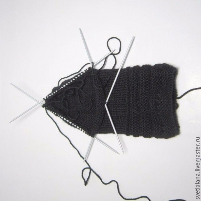Для удобства вязания опять переходим на вязание 5 спицами.